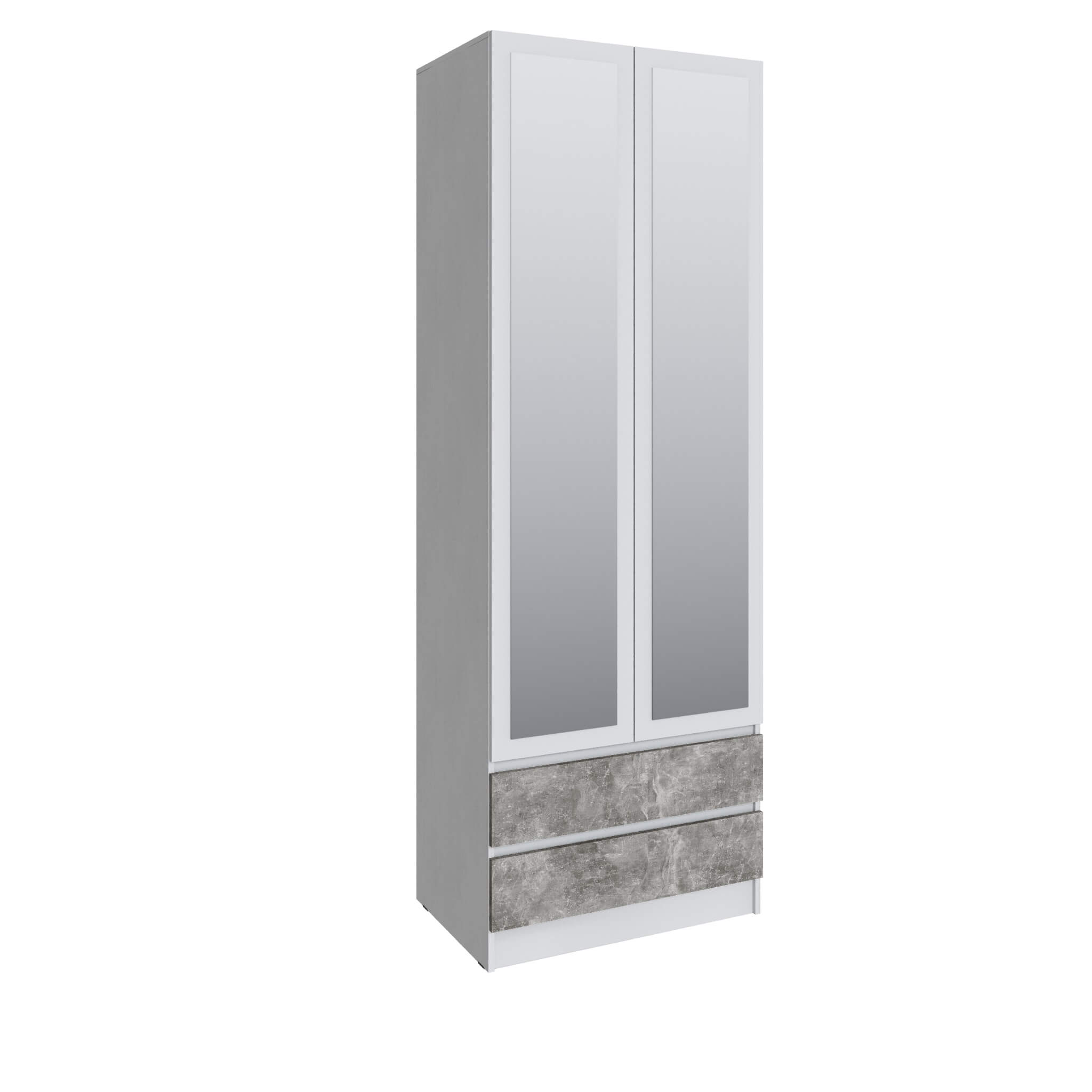 Шкаф Мадрид (0,8) с 2 ящ. без ручек с зеркалом белый/ателье светлое