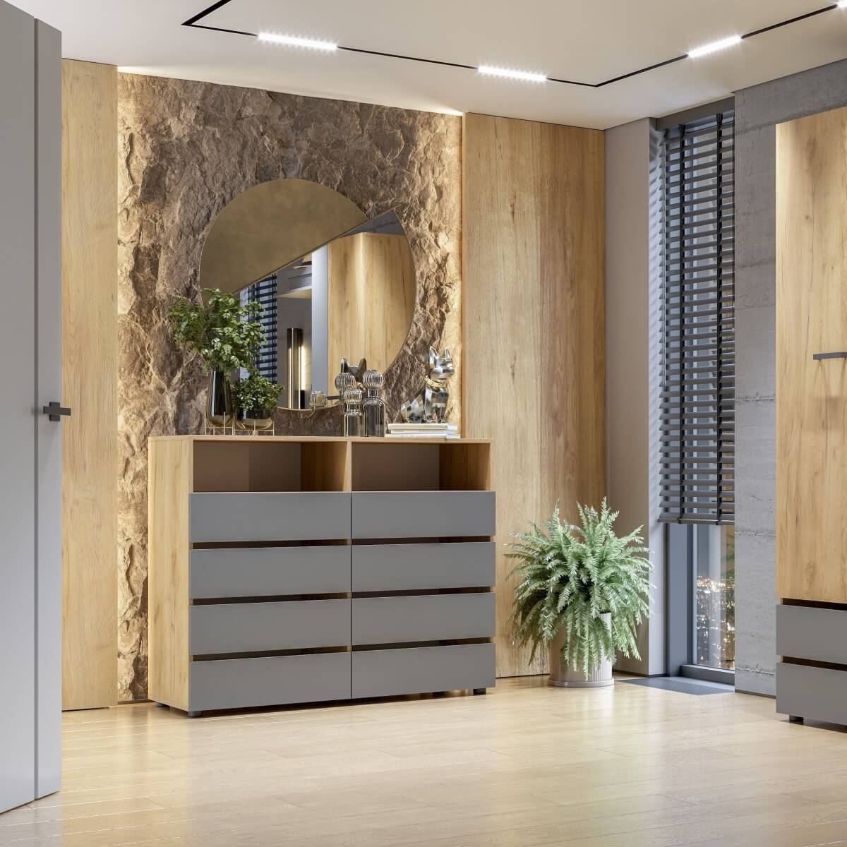 МС "Абрау" Комод с ящиками Дуб Золотой/Графит Серый