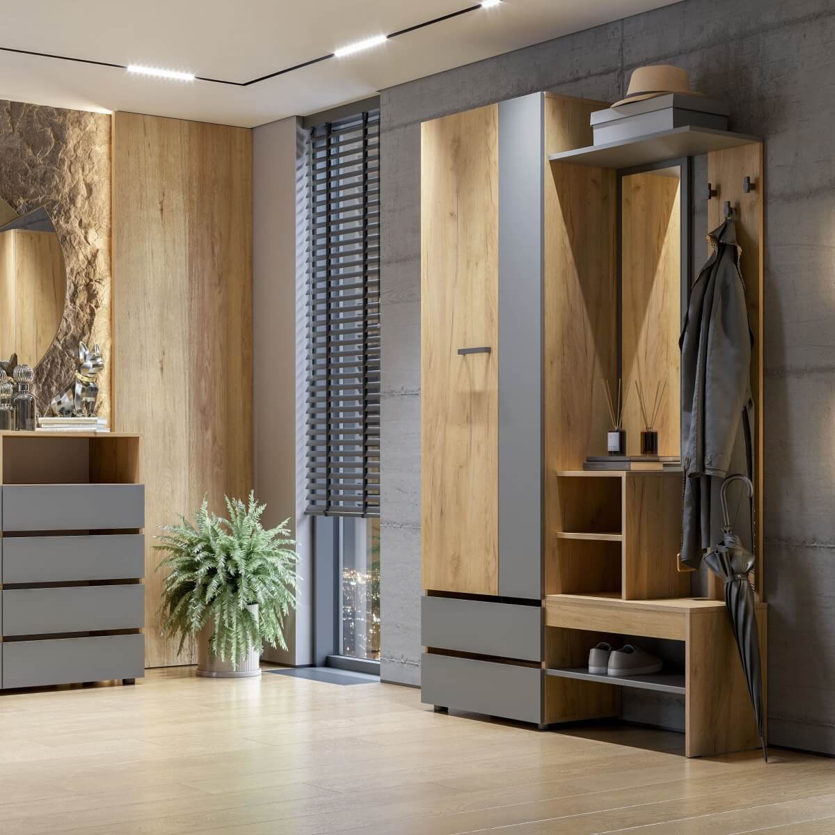 МС "Абрау" Вешалка с зеркалом Дуб Золотой/Графит Серый