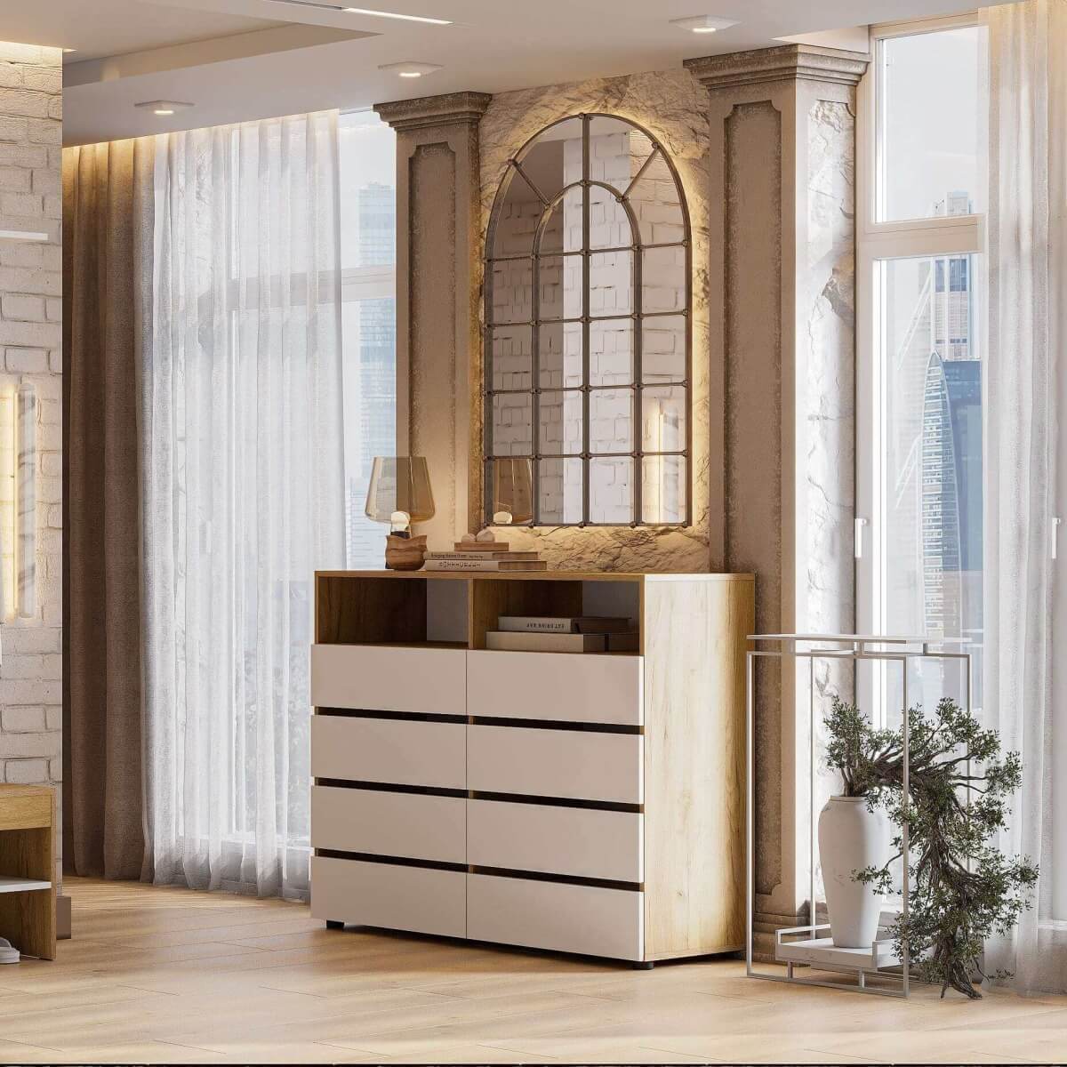 МС "Абрау" Комод с ящиками Дуб Золотой/Белый
