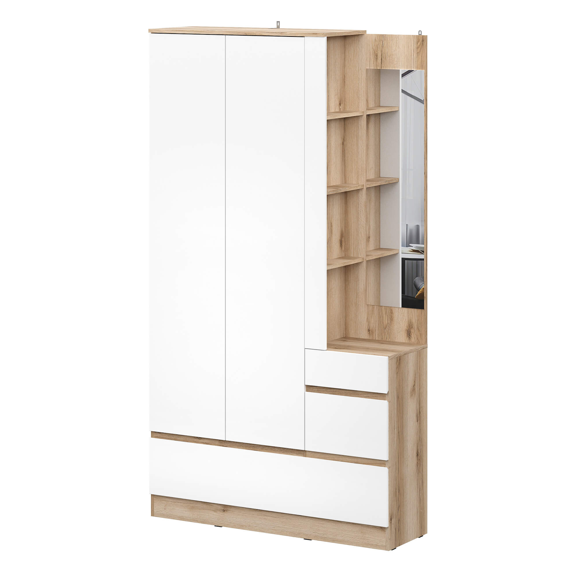 МС "Брауни" Вешалка с зеркалом (Серия 2) Дуб Делано/Белый